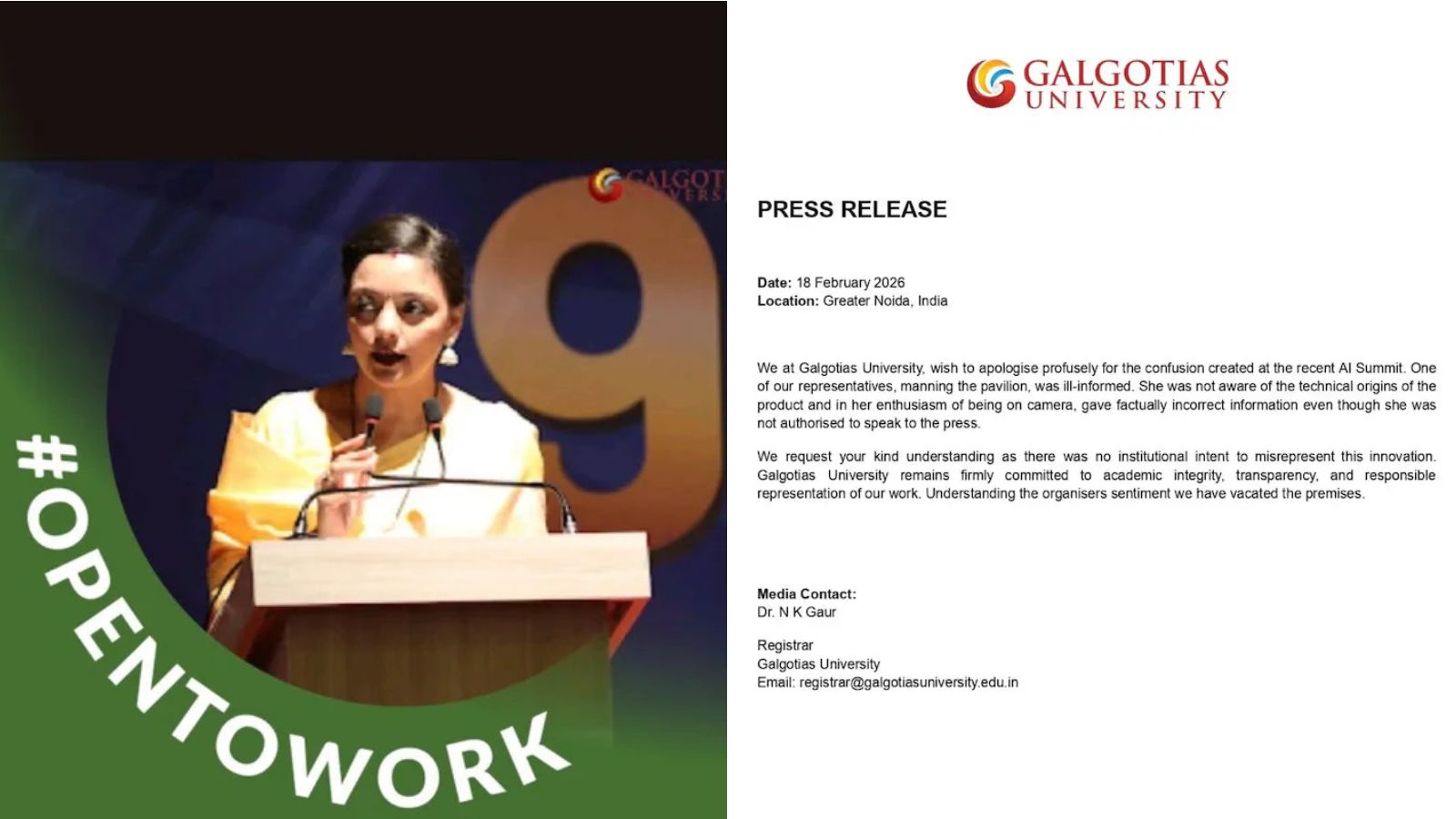 The drama reached a boiling point when Galgotias University released an official statement. Despite Neha being the university’s chosen face for the summit, the school suddenly labeled her “ill-informed” and “unauthorized to speak to the press.” They pinned the entire “factually incorrect” presentation on her individual enthusiasm, effectively distancing the institution from its own pavilion’s claims.