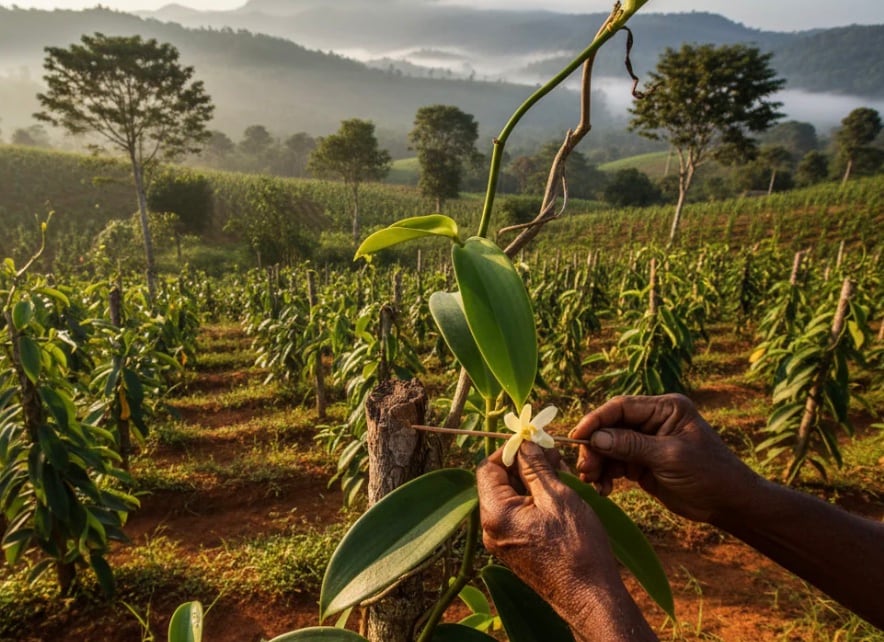 Vanilla thrives in warm temperatures, high humidity, and consistent rainfall—conditions that Madagascar’s tropical climate provides perfectly. Fertile soil, natural shade from taller trees, and careful cultivation practices all help produce high-quality vanilla beans. (Image: X)