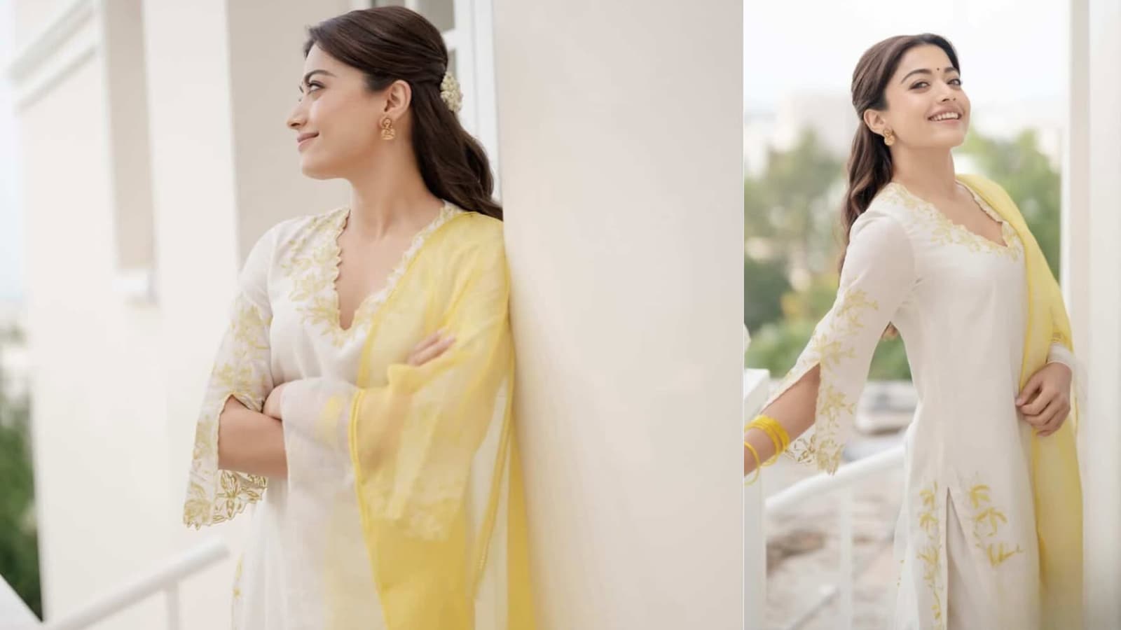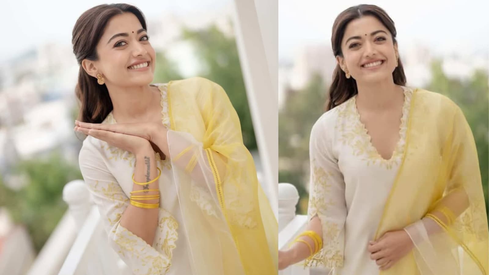 News lifestyle fashion Rashmika Mandanna Keeps It Graceful And Elegant In A Beautiful Ivory Yellow Chanderi Kurta Set