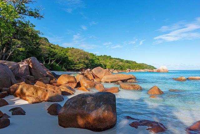 Praslin offers a different kind of stillness. Curieuse Island, just offshore, is home to Aldabra giant tortoises that roam freely across the landscape, unbothered by visitors. Walking paths wind through mangroves and coastal scrub, giving the sense that nature sets the pace here and not people. On Mahé, hiking trails through Morne Seychellois National Park descend towards hidden coves, offering moments of quiet reward to those willing to take the slower route.