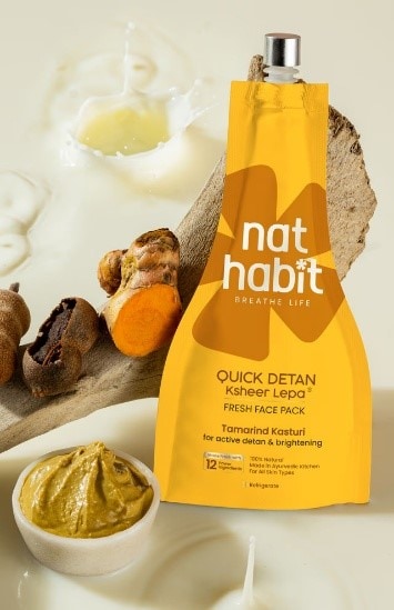 Fresh Tamarind Kasturi Lepa: An Ayurvedic detan face pack designed to brighten the skin and reduce tanning using natural ingredients. This fresh-made lepa is powered by tamarind and kasturi, helping to detan, brighten, and cleanse the skin while maintaining its natural balance.