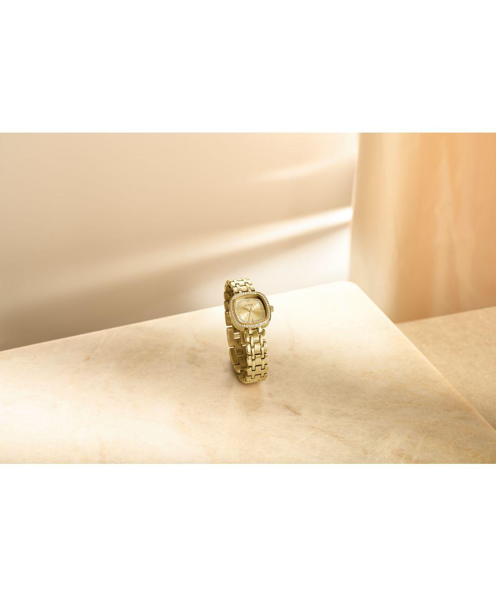 Hazel – A refined timepiece featuring a 25 x 25 mm polished recycled steel case adorned with crystals, a sunray dial, and a sleek polished recycled steel bracelet, blending modern elegance with conscious design.