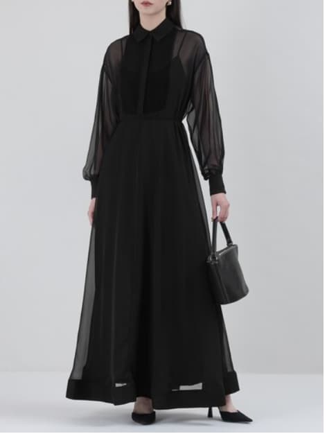 Women Black Miiaah Printed Bib-Detail Maxi Dress: Striking and refined, the Ted Baker black dress is a dramatic statement piece for elegant evenings. Crafted from pure polyester with a soft, sheer finish, it flows into a sweeping, floor-length silhouette. The structured woven bib detail contrasts beautifully with the fluid fabric, while the spread collar, concealed button front, and voluminous long sleeves add tailored polish. A cinched waist enhances the feminine shape, making it ideal for formal dinners or artistic evening events.