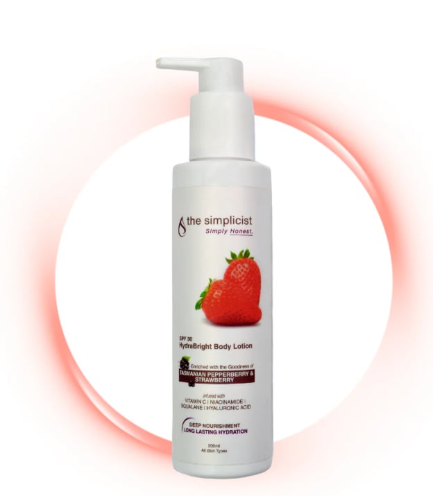 A lightweight yet rich body lotion powered by hyaluronic acid, squalane, and shea butter for deep, lasting hydration. Brightening botanicals, licorice, vitamin C, and strawberry extract reduce dullness and promote an even-toned glow. With SPF 30, it protects against tanning and pigmentation, keeping skin luminous every day. Price: ₹499