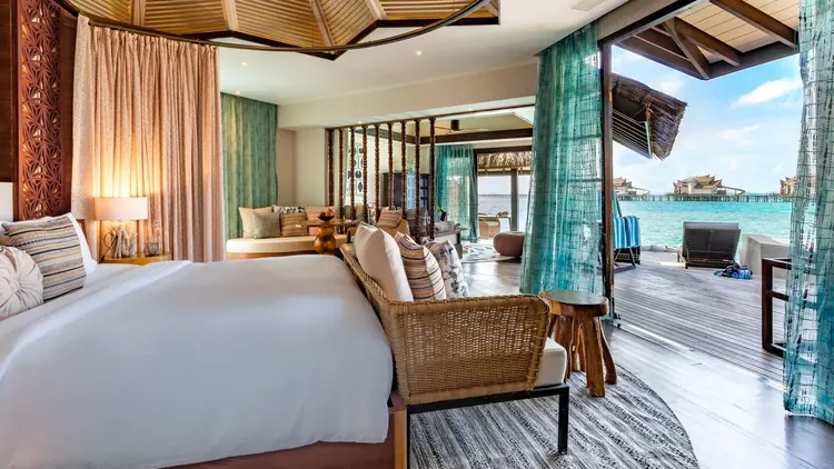 While the resort largely caters to couples and honeymooners, families are not overlooked. Specially designed villas with slides plunging into the lagoon ensure younger guests are equally enchanted, without disrupting the island’s tranquil rhythm.